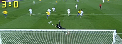 Robinho trifft für Brasilien mit einem Schlenzer ins lange Ecke. Obwohl dies die Entscheidung ist, geben sich die Chilen nicht auf. Die Seleção versucht bestimmt den einen oder anderen Zaubertrick zu zeigen. Na dann los! Bravo, Bravo! Er verhindert das 4:0 nach schnellem Konter. Im Gegenzug verhindert Cesar das 3:1. Für uns unbeteiligte Zuschauer schön anzusehen. Belá Réthy schwärmt vom Schiri. Suazo trifft nach einer Ecke leider nicht ins Tor. Aber die Direktabnahme war sehenswert. Gleich ist Abpfiff. Ende - Aus! 3:0.