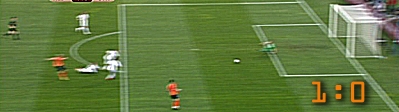 Die Niederlande geht das Spiel konzentriert an und erarbeiten sich ein leichtes Übergewicht. Plötzlich ein langer Paß aus der Abwehr von Sneijder auf die rechte Angriffseite zu Robben, der sich den Ball erläuft und auf Höhe des Strafraums ein Haken nach Innen schlägt. 2 Slowaken läßt er stehen und zieht satt mit links ins rechte untere Toreck ab. Ein Robben, halt! 1:0 in der 18. Minute!