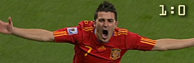Jetzt ist es soweit der port. Torhüter hält Villas Flachschuß, doch gegen den Nachschuß ist er machtlos.! David Villa - er freut sich!