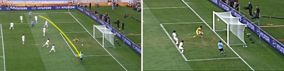 Flanke in den Rücken der Abwehr, die wohl noch in der Kabine schlief.
